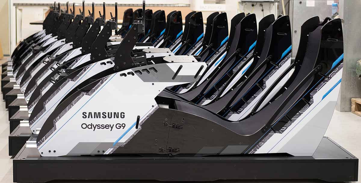The campaign will feature the Samsung G9 49” 240hz ultra wide gaming monitors which are one of the best screens for simulation purposes with it’s wideness and super high refresh rate. The G9s will be mounted on OP Formulas with special Samsung G9 livery. The rig features obviously the OP Single Monitor Mount and the OP Electric Pedal Adjuster to allow the store visitors with all sizes to give the rig a go.